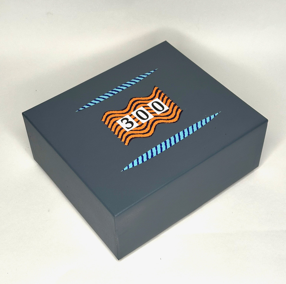 Puzzle Tout Nouveau are one-of-a-kind paintings executed on salvaged and reassembled puzzles. Puzzles are acquired second hand and assembled. An original painting is rendered on the completed puzzle using a variety of techniques such as drawing, painting, silkscreen, spray paint, stenciling, etc and sealed with a layer of clear-coat for durability. Finally, the puzzle is disassembled, and re-packaged. The number of pieces is labeled on the box and each box includes a reference photo so you can put it back together. Boxes vary in size and shape, as does the price. Each puzzle is unique.