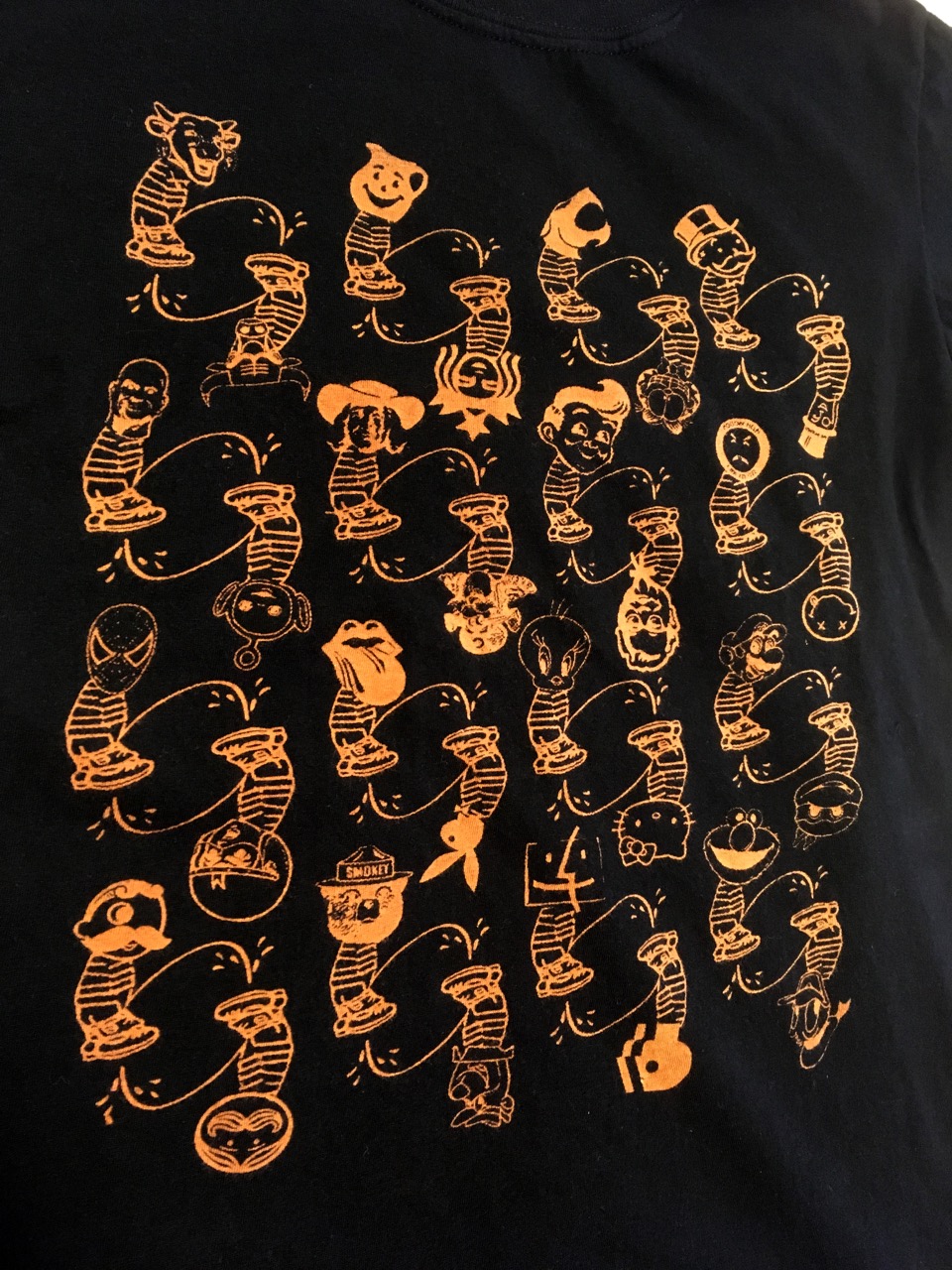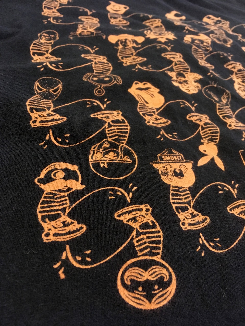 This shirt is printed with bleach on a black Gildan Soft-Style shirt.