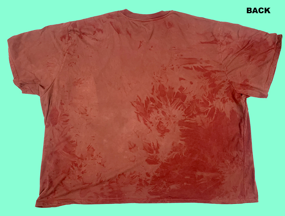 Bring out the Car Fighter within! Carfighter Logo printed in white on bleached, over-dyed, dark red, thrifted tee. Size: 6XL Each shirt is unique.