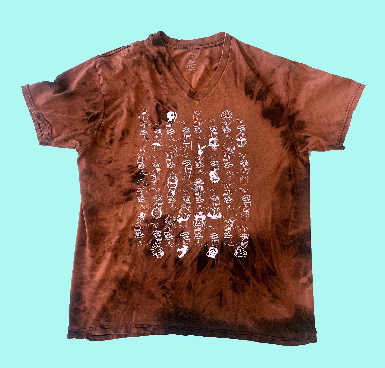 Each shirt is bleached with a unique pattern.