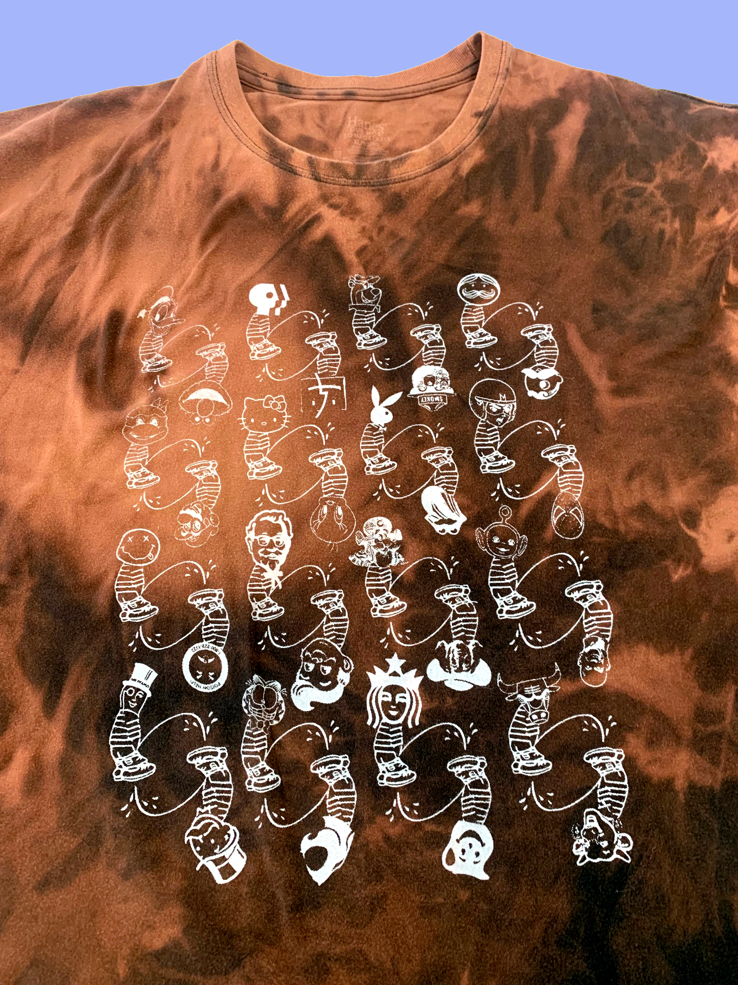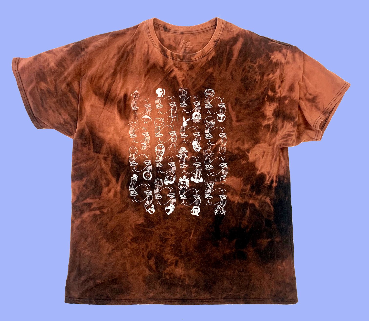 Each shirt is bleached with a unique pattern.