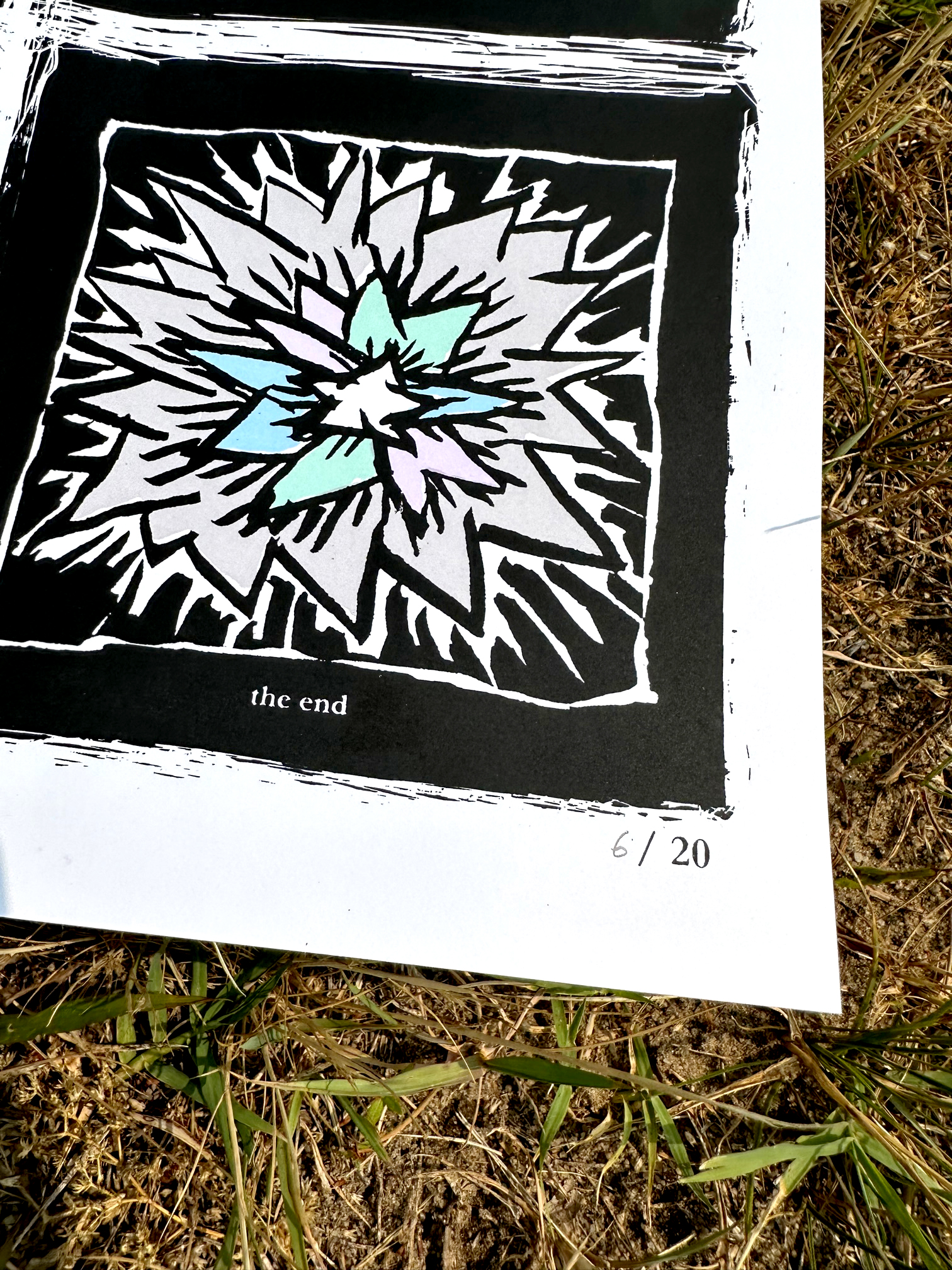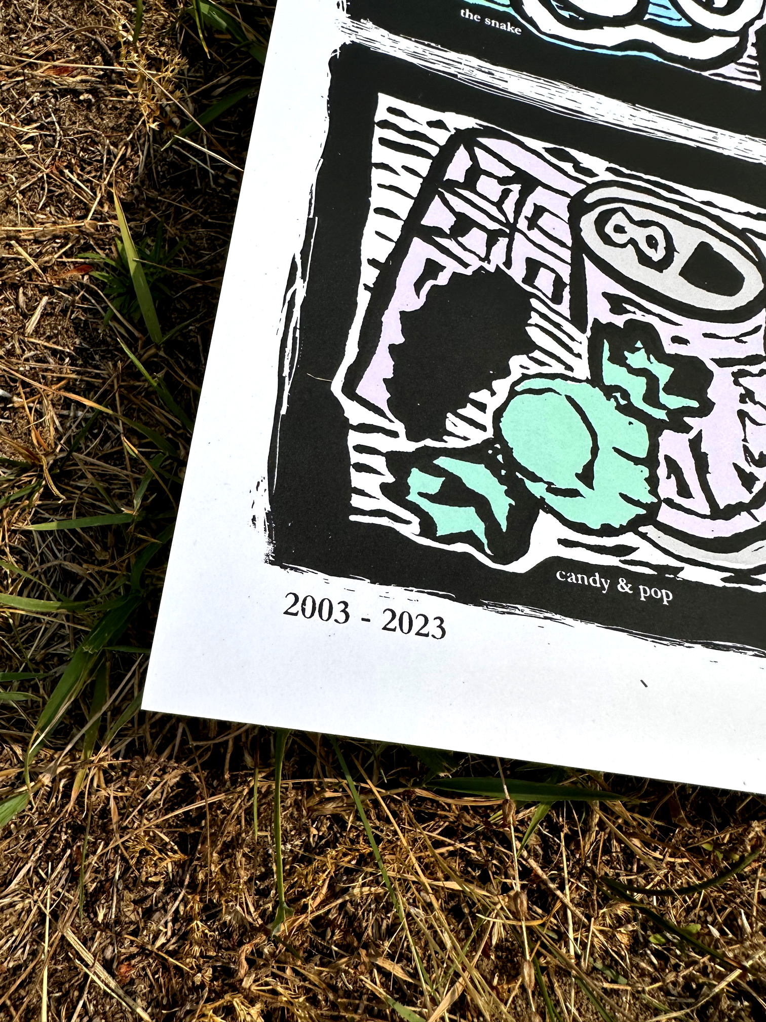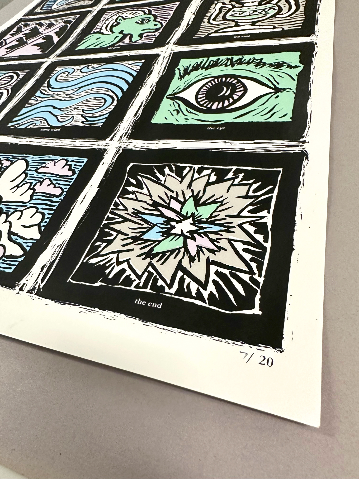 18" x 24" five-layer screen-printed poster from handmade stencils. Printed on white 100lb French paper. Limited edition of 20, signed and numbered.